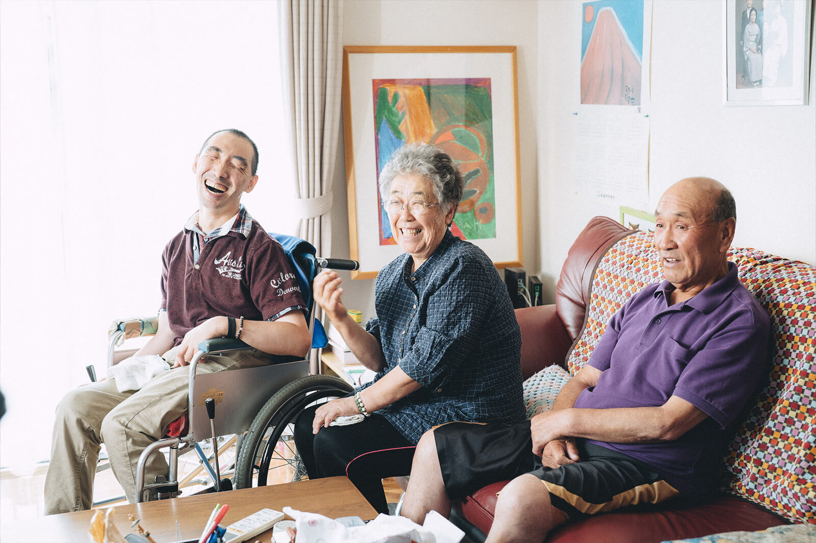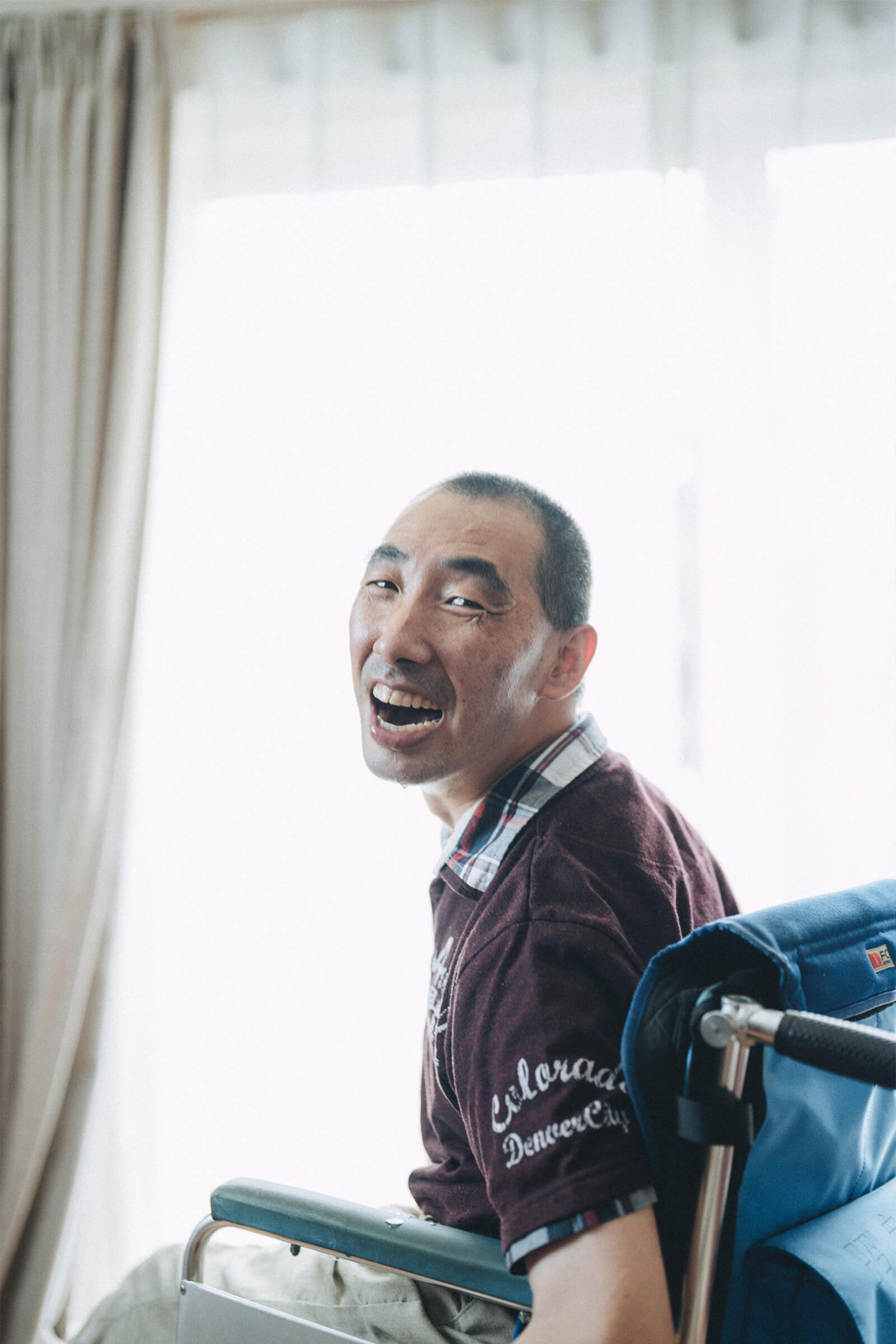 いつも穏やかな笑顔を浮かべている昭宏さん。けれど、その笑顔にも揺らぎがある。嬉しさ、はにかみ、照れくささ、ふとした戸惑い、小さな怒り…。言葉はなくとも、そこには確かな感情があります。時折見せる、何かを伝えたそうに、そっと母の腕へ手を伸ばす仕草。そんなとき母は、言葉ではなく、わずかな触れ方の違いからその気持ちをそっと汲み取るのです。