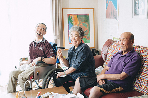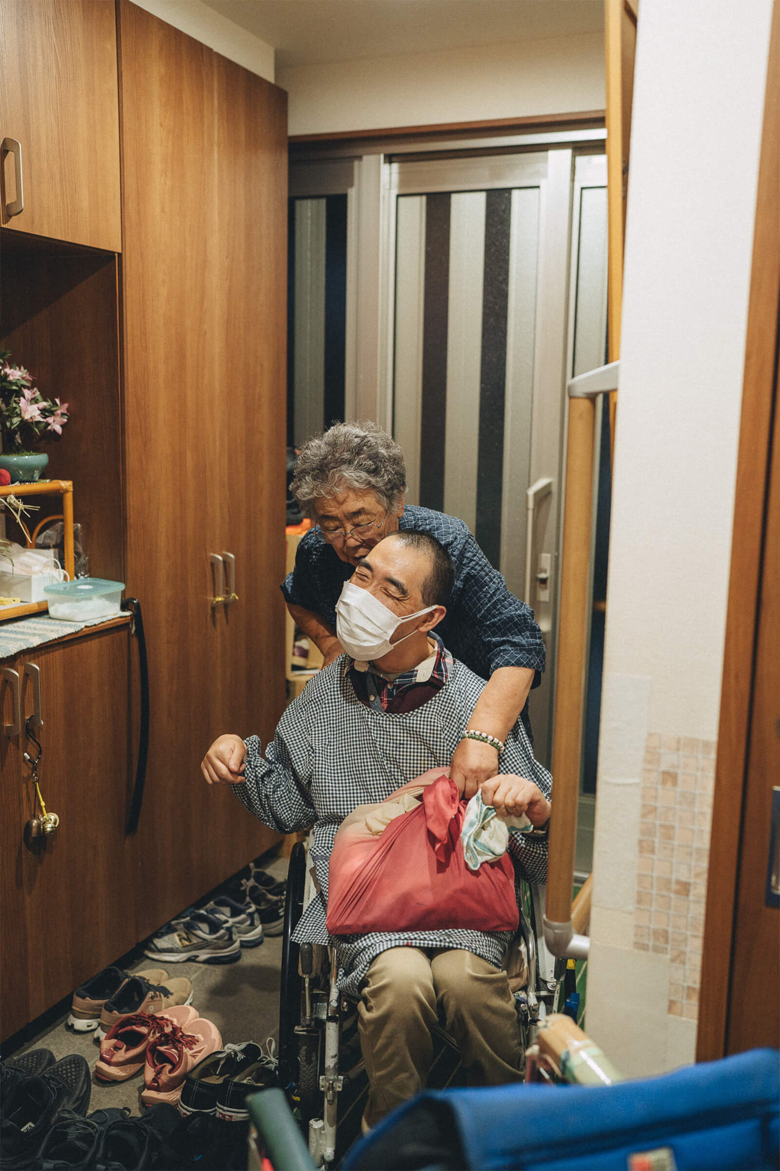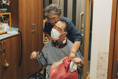 いつも穏やかな笑顔を浮かべている昭宏さん。けれど、その笑顔にも揺らぎがある。嬉しさ、はにかみ、照れくささ、ふとした戸惑い、小さな怒り…。言葉はなくとも、そこには確かな感情があります。時折見せる、何かを伝えたそうに、そっと母の腕へ手を伸ばす仕草。そんなとき母は、言葉ではなく、わずかな触れ方の違いからその気持ちをそっと汲み取るのです。