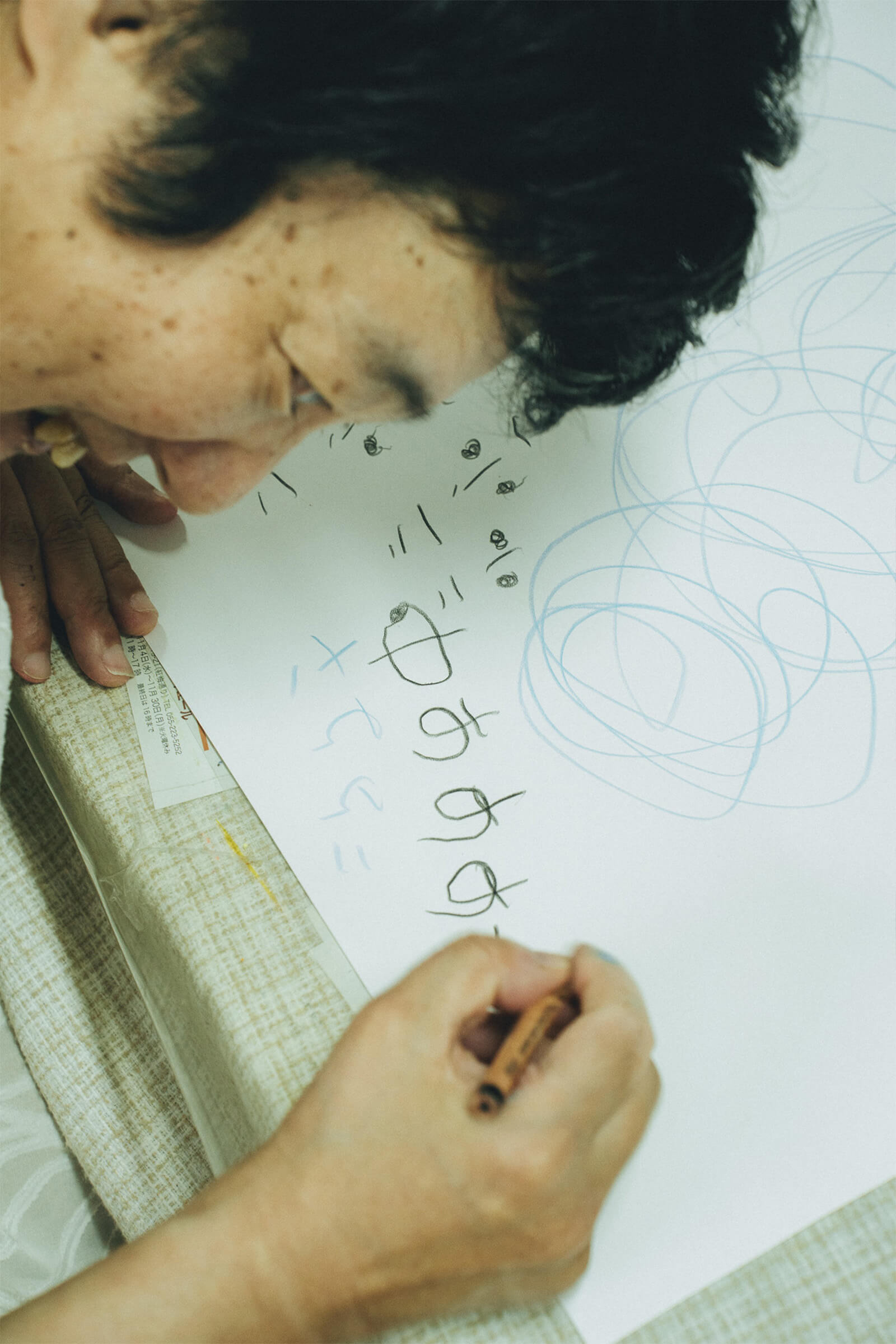 「この“す”は、大好きな弟さんの名前からとった一文字なんです」。渡邉さんに見守られながら描かれていく文字や人の表情の一つひとつには、揺れ動く刹那の感情が表れているよう。その集中力はすさまじく、彼女なりの完成を迎えるまでペンが止まることはありません。