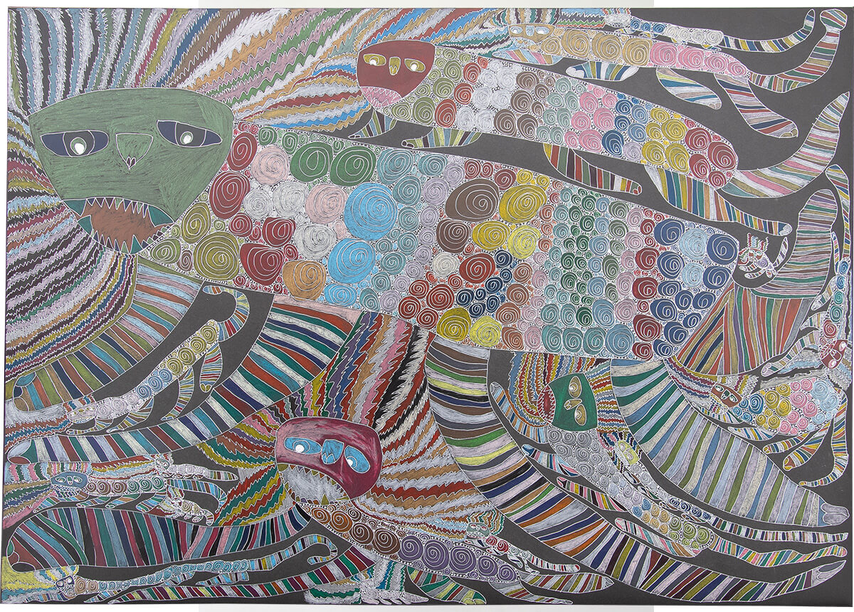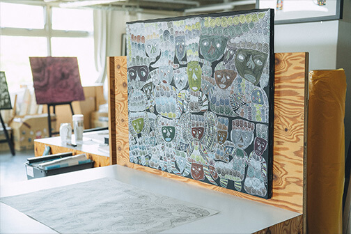 「ここに来た当初は今とは違い内職のような作業をしていました。でもある日、作業の合間にふと絵を描き始めまして。ご両親も、彼がこういった絵を描くことを知らなかったそうで、とても驚いていましたね」
