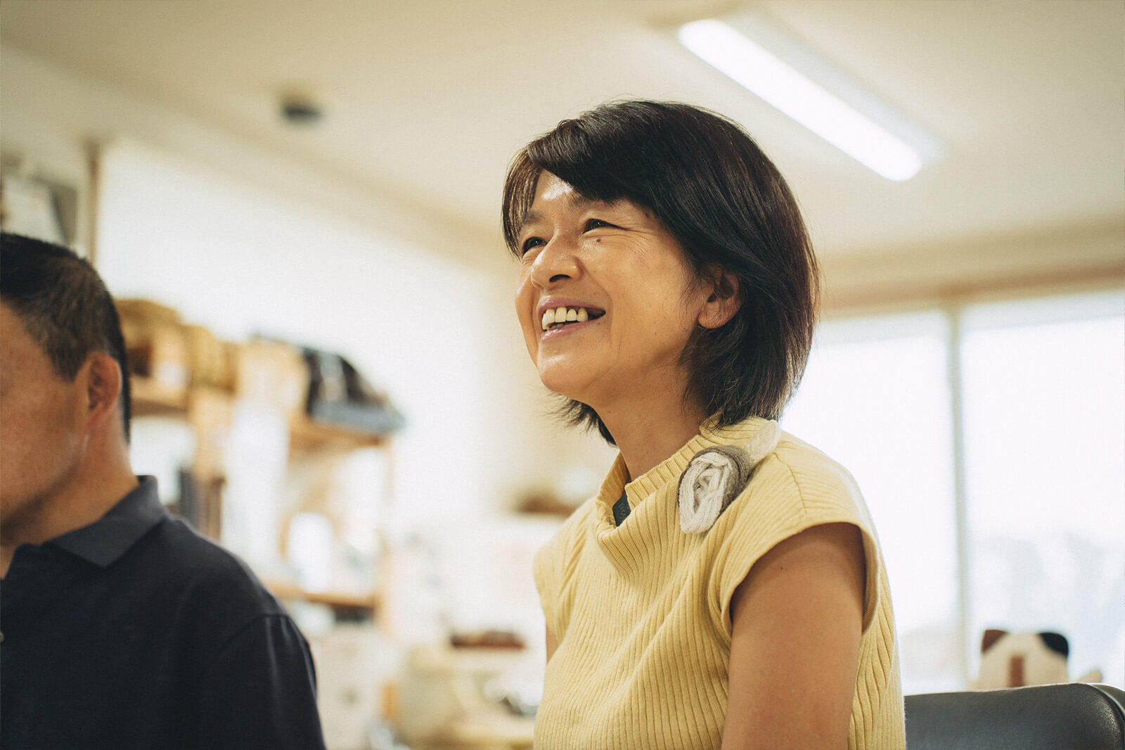 25年以上にわたって岳史さんを支えてきた支援員の青柳一美さん。「たけちゃんの笑顔を見てると、こっちまで優しい気持ちになりますよね」と、ともに過ごしてきた季節を優しく振り返ります。岳史さん、本当にたくさんの人に愛され、そして愛を与えているんですね。