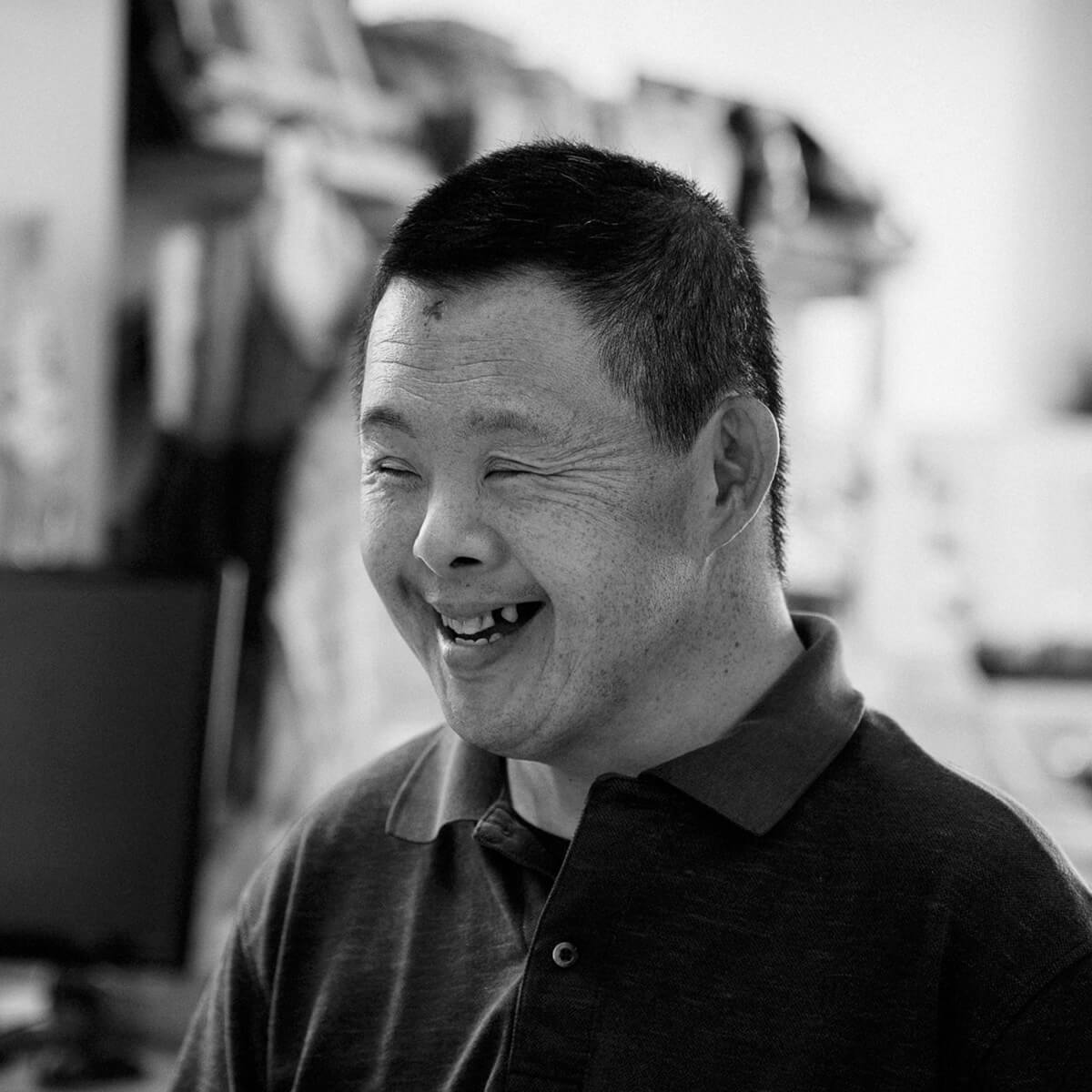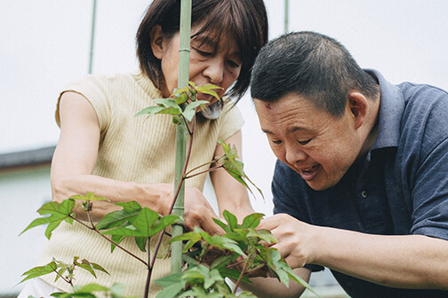 25年以上にわたって岳史さんを支えてきた支援員の青柳一美さん。「たけちゃんの笑顔を見てると、こっちまで優しい気持ちになりますよね」と、ともに過ごしてきた季節を優しく振り返ります。岳史さん、本当にたくさんの人に愛され、そして愛を与えているんですね。