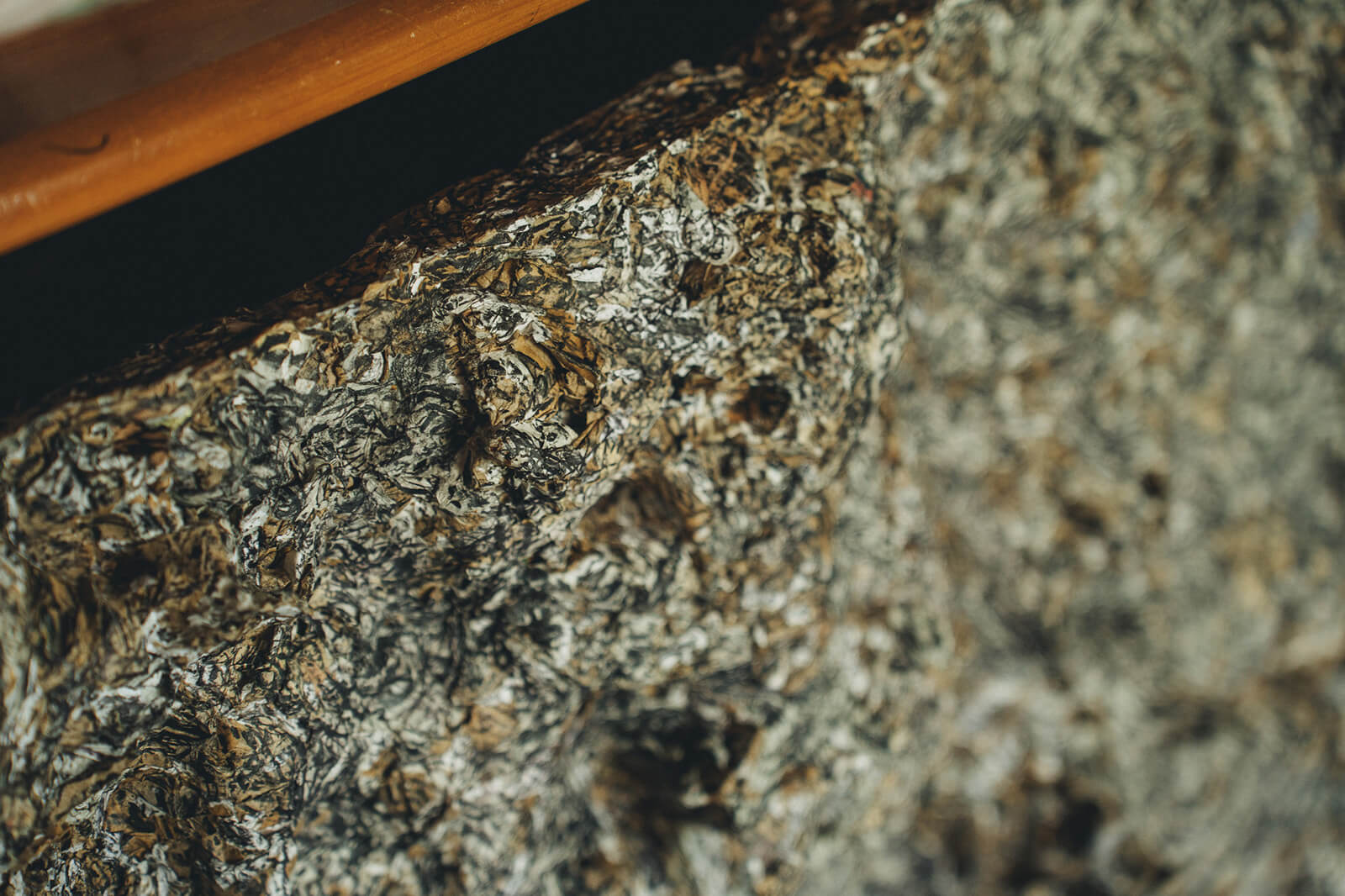 「描いているというよりは、描かされてると感じる時があります」 彼のキャンバスは、広告の裏や紙袋の切れ端など、日常に埋もれていた紙たち。つなぎ合わされたそれらは、黒々とした線で覆われ、どこまでも這い回るように広がっています。道具は油性ペン、ボールペン、墨。決して特別な材料を使っているわけではありません。それでも、三科さんの手にかかると、それらはまるで生命が宿ったかのように、ゆっくりと息をし始めるのです。