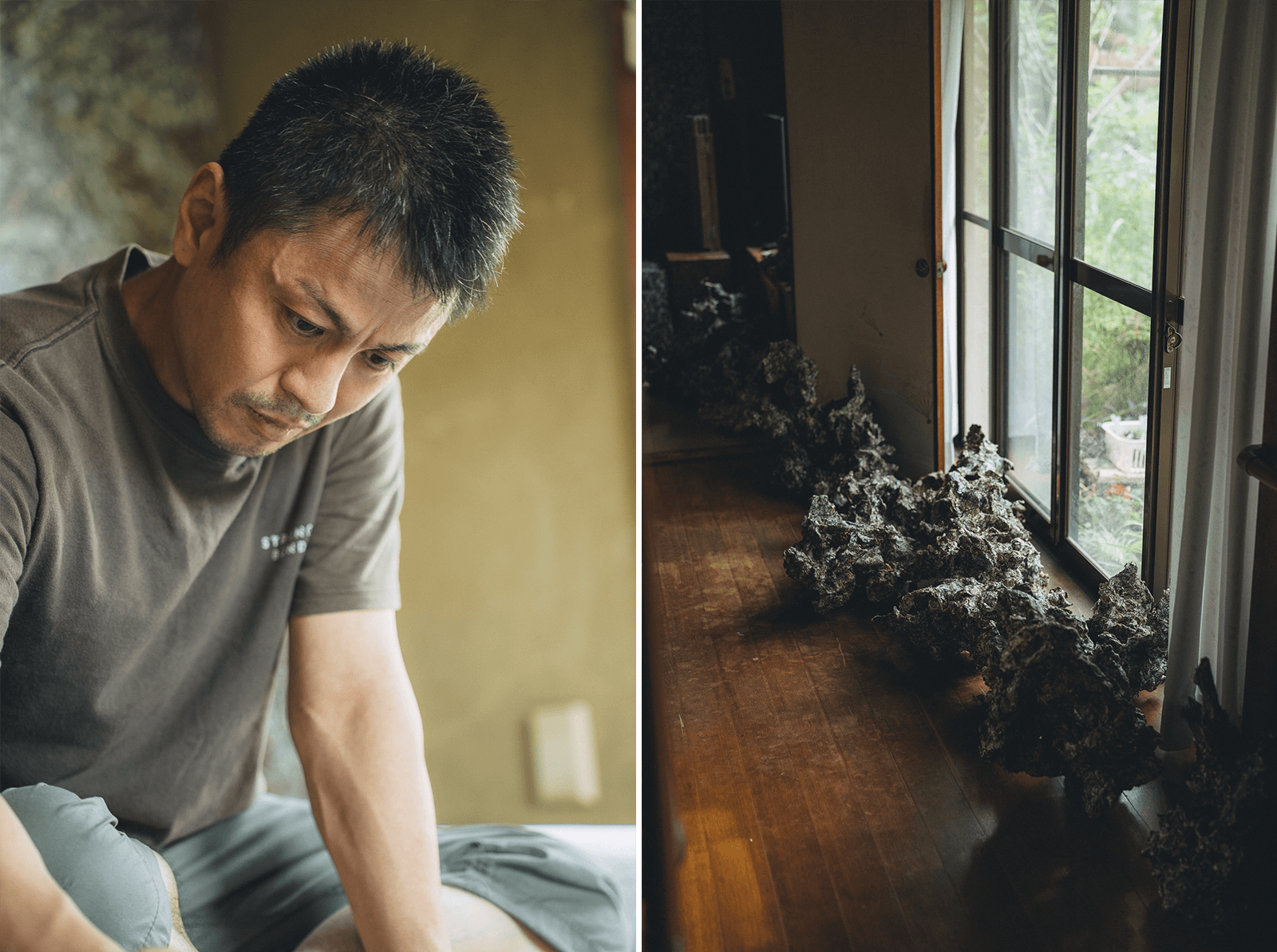 時折、描かれた線の中に、人の顔や、身体の曲線のようなものがふと浮かび上がることがあります。「でも意識して人を描こうとすると、いい線が描けなくなってしまう」。形を求めた瞬間、線は息を止めてしまう。だから彼は、意味を決めず、ただただ無心で線を刻み続けています。
