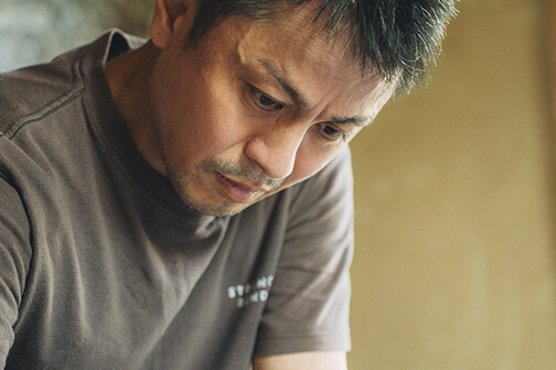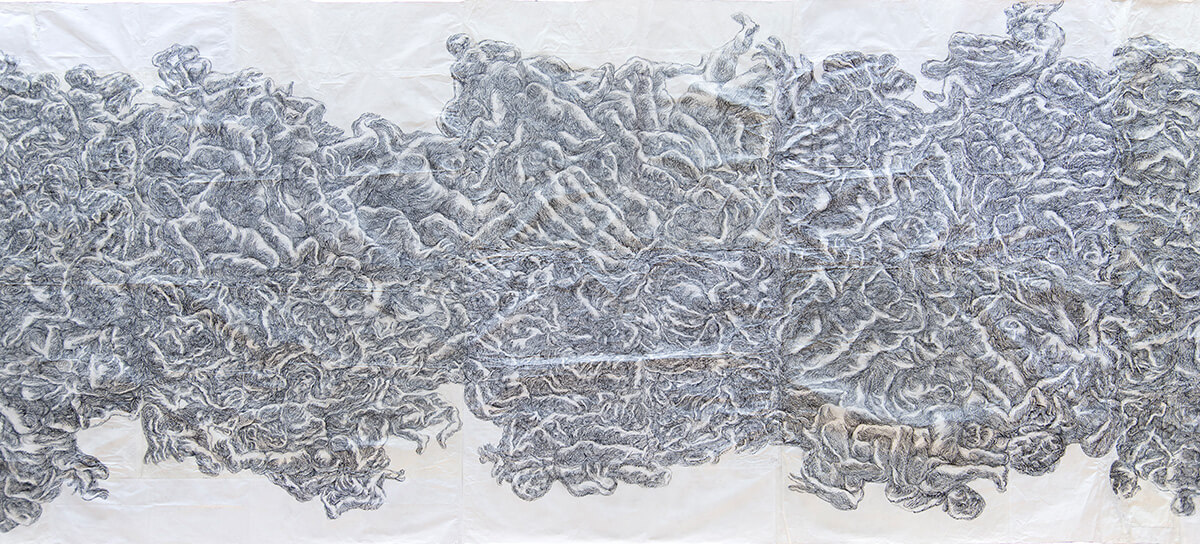 時折、描かれた線の中に、人の顔や、身体の曲線のようなものがふと浮かび上がることがあります。「でも意識して人を描こうとすると、いい線が描けなくなってしまう」。形を求めた瞬間、線は息を止めてしまう。だから彼は、意味を決めず、ただただ無心で線を刻み続けています。